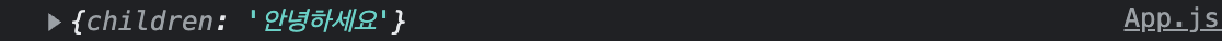 정보를 받는 방식은 기존과 동일하나 이름이 children으로 고정되어 있다. 위 코드와 같이 부모 컴포넌트로 부터 받은 props를 console을 찍어보면