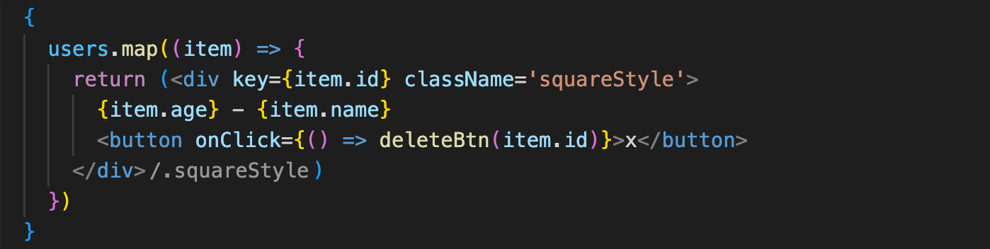 {item.age} - {item.name} 과 x 버튼이 리턴되게 했다.