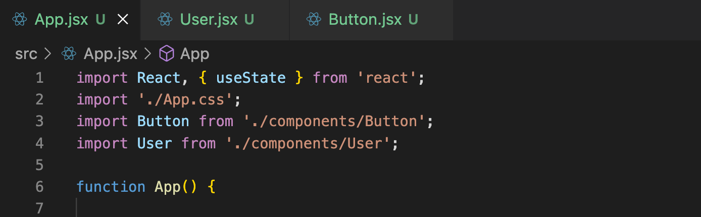 메인 파일인 App.jsx에서도 export된 파일을 받아야 하므로 분리된 파일을 import 해준다.