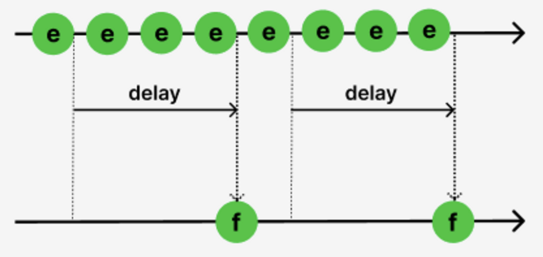- 짧은 시간 간격으로 연속해서 발생한 이벤트들을 일정시간 단위(delay)로 그룹화하여 처음 또는 마지막 이벤트 핸들러만 호출되도록 하는 것